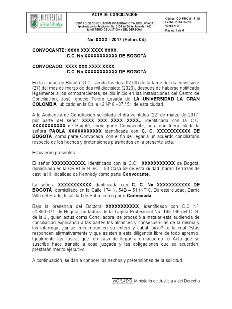 Formato Acta Acuerdo Exoneracion De Alimentos Bogota Instituciones Sociales