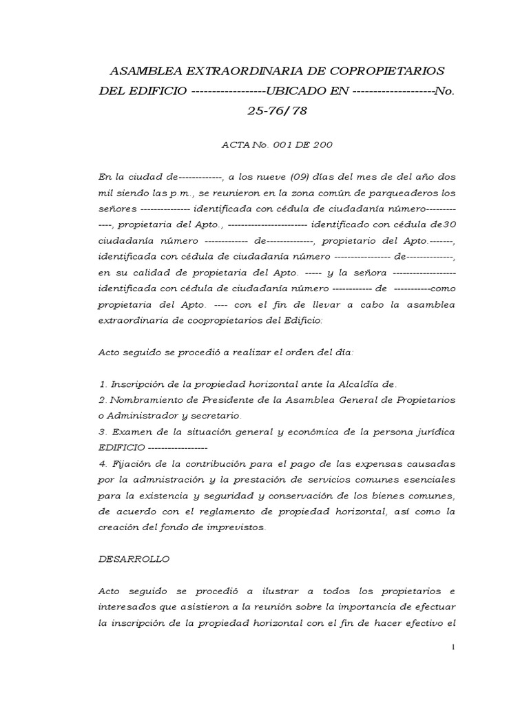 Modelo De Acta De Asamblea De Copropietarios Politica Gobierno