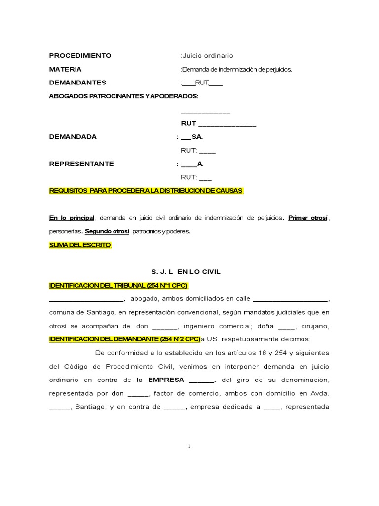 Demanda De Juicio Ordinario Modelo General Sanperhouse Es