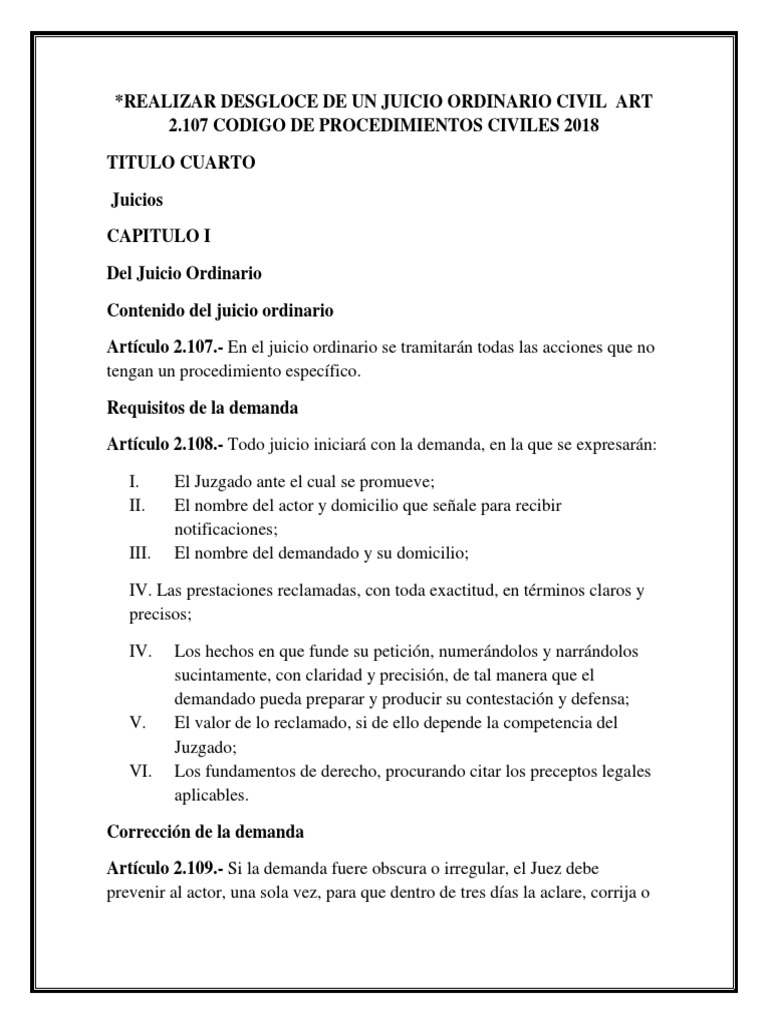 Desgloce De Un Juicio Ordinario Civil Demanda Judicial Sentencia Ley