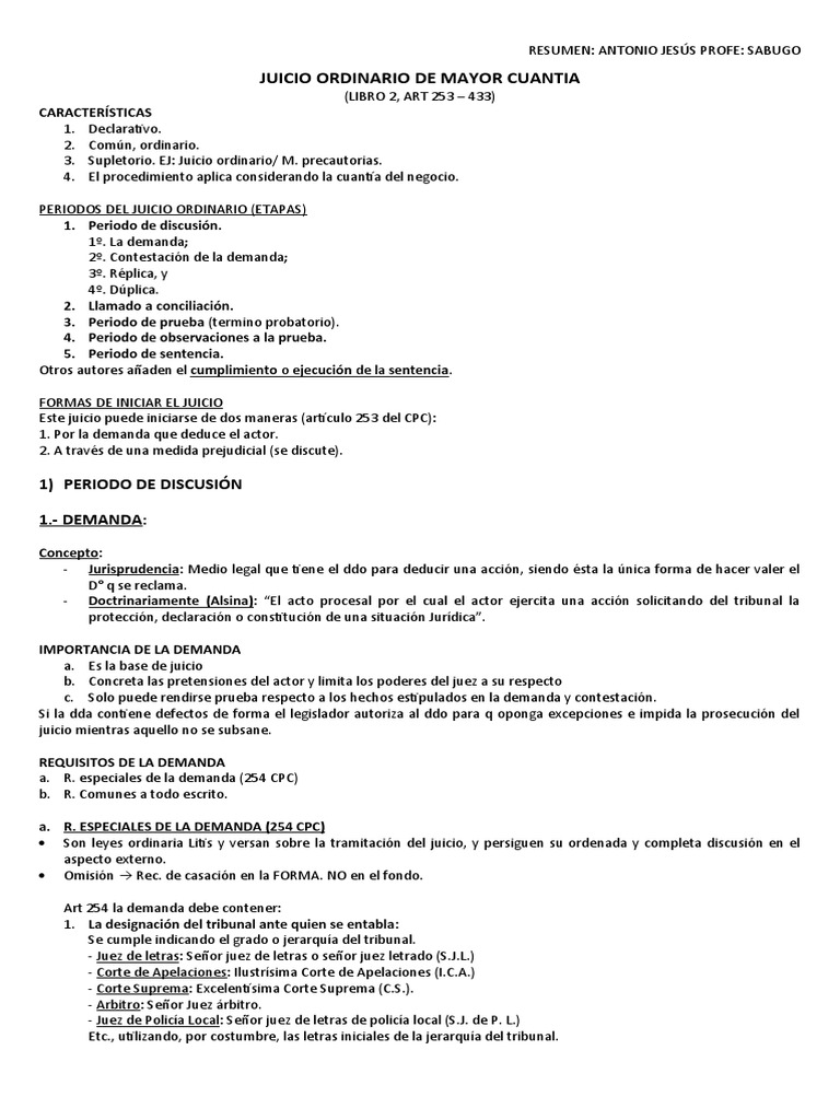 Resumen Juicio Ordinario Sabugo Pdf Demanda Judicial Sentencia Ley