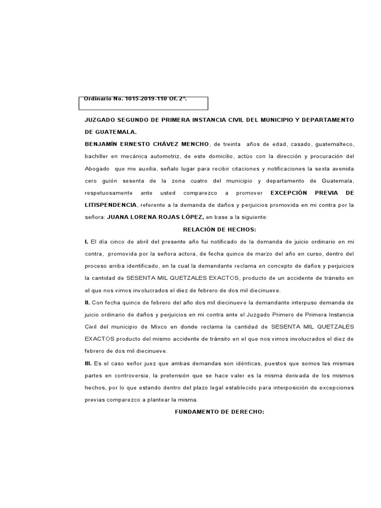 Ejemplo Excepcion Litispendencia Juicio Ordinario Pdf Estoppel Colateral Demanda Judicial