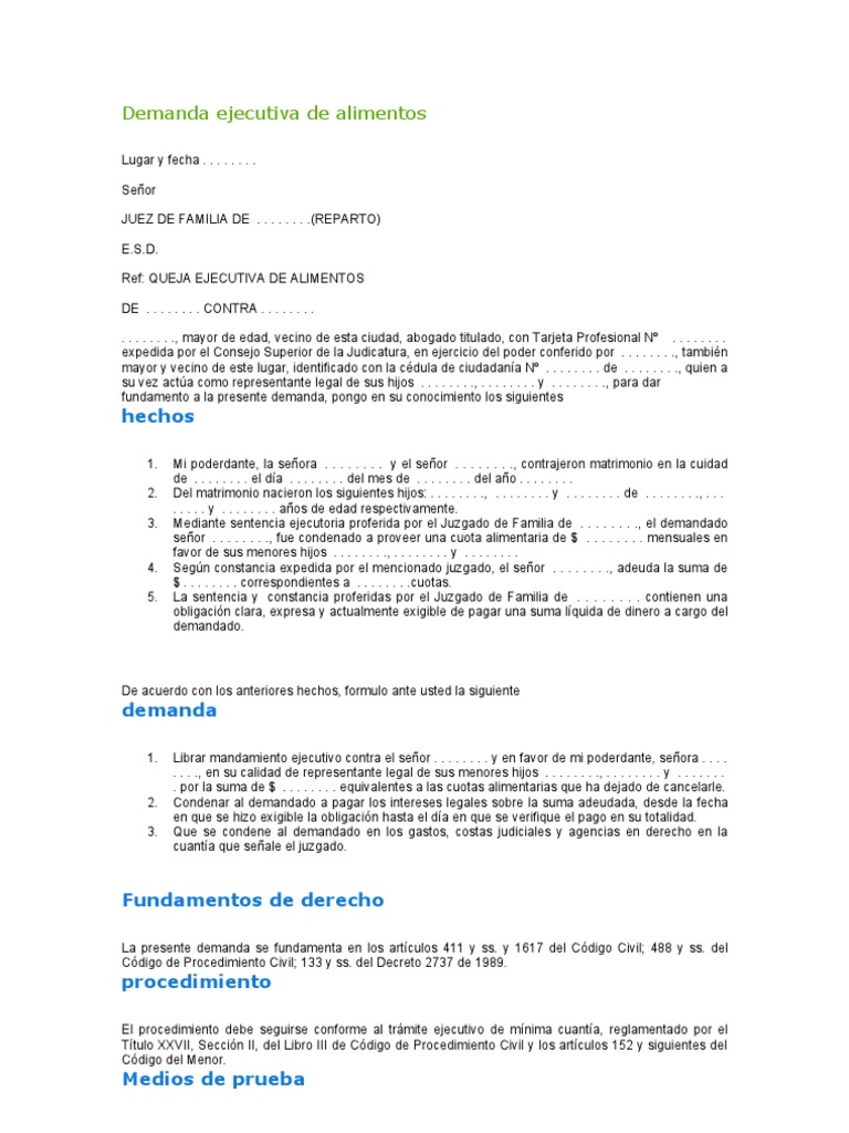 Demanda Ejecutiva De Alimentos Modelo Demanda Judicial Informacion Del Gobierno