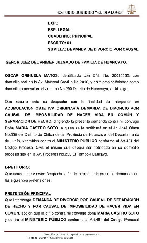 Modelo De Demanda De Divorcio Lopna Divorcio Justicia
