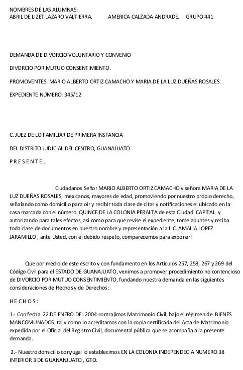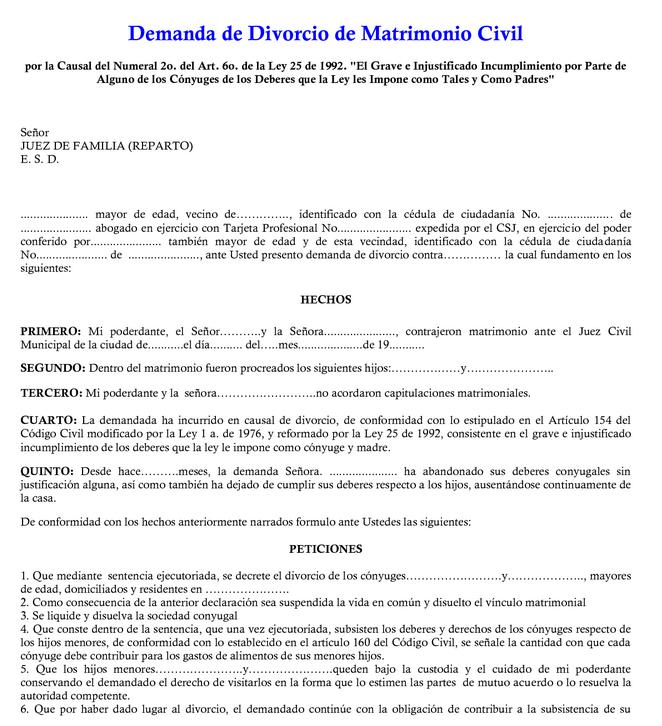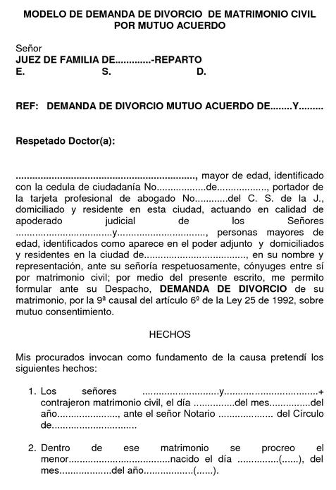 Modelo de demanda de divorcio contencioso en jalisco. Y en todo caso si algn da en concreto hubiera alguna dificultad lo que entra dentro de la normalidad los abuelos paternos los recogeran. Modelo de demanda de divorcio de mutuo acuerdo sin hijos y con separacin de bienes El artculo 90 del Cdigo Civil dice que para poder presentar una demanda para un divorcio de mutuo acuerdo sin hijos menores no emancipados ni hijos mayores con capacidad modificada judicialmente y habiendo contrado matrimonio bajo el rgimen de separacin de bienes es necesario que ambas partes firmen.