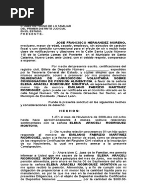 Diligencia De Jurisdiccion Voluntaria Consignacion De Alimentos Pdf Pension Alimenticia Gobierno